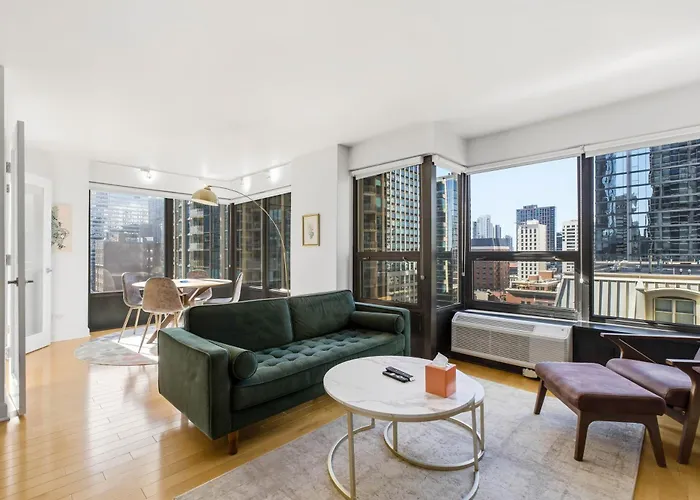 Cette propriété 2Bd River North Million Dollar Views! Parking Incl Condo propose également une cuisine équipée avec un four et un lave-vaisselle. L'appartement est située assez proche de la station de métro Chicago. De plus, les clients trouveront à leur disposition un centre de fitness, leur permettant de rester en forme.